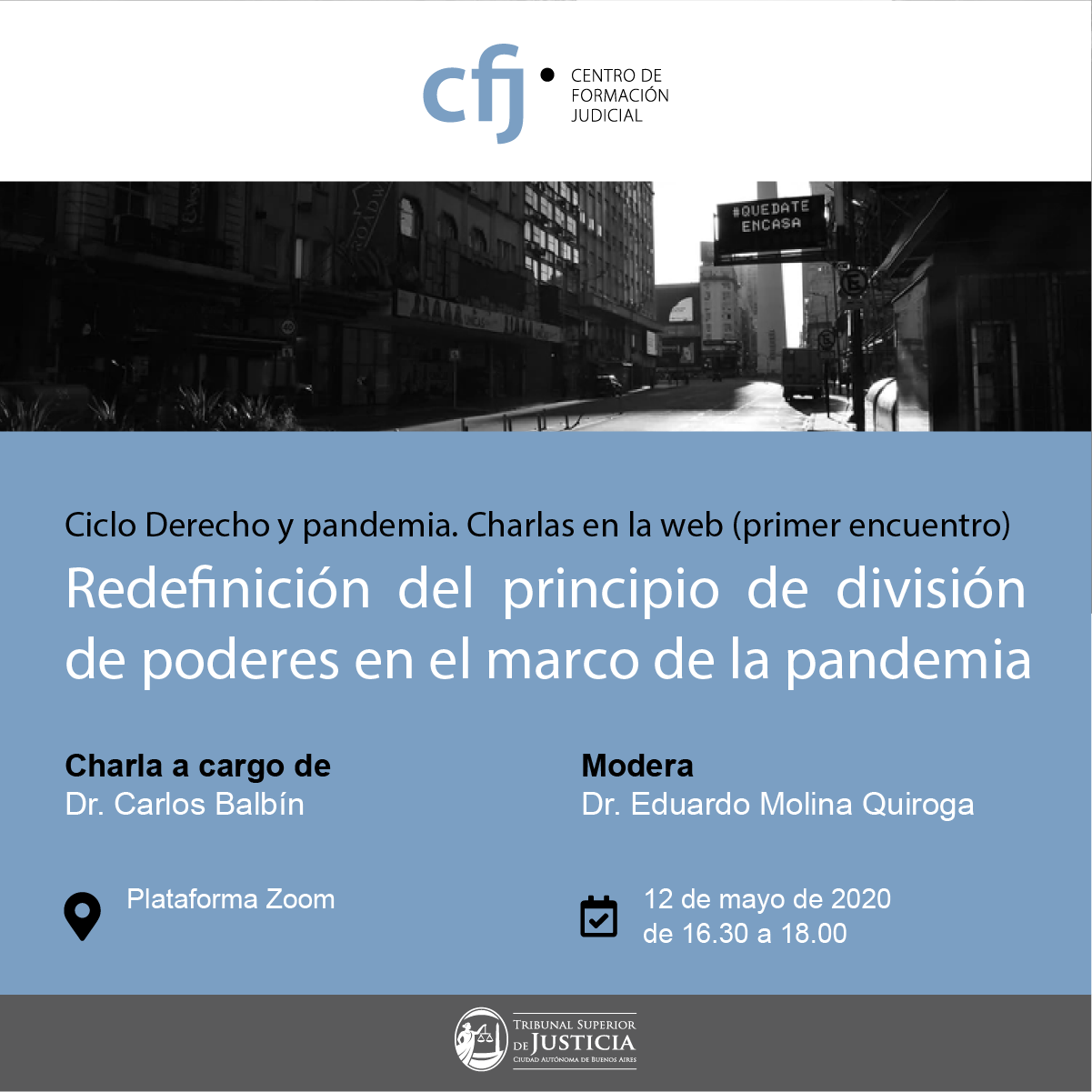 El Centro de Formación Judicial lanzó una serie de conversatorios bajo la denominación Derecho y pandemia. Ciclo de charlas en la web. El primer encuentro con modalidad virtual estuvo a cargo del Dr. Carlos Balbín y contó con una gran cantidad de participantes.