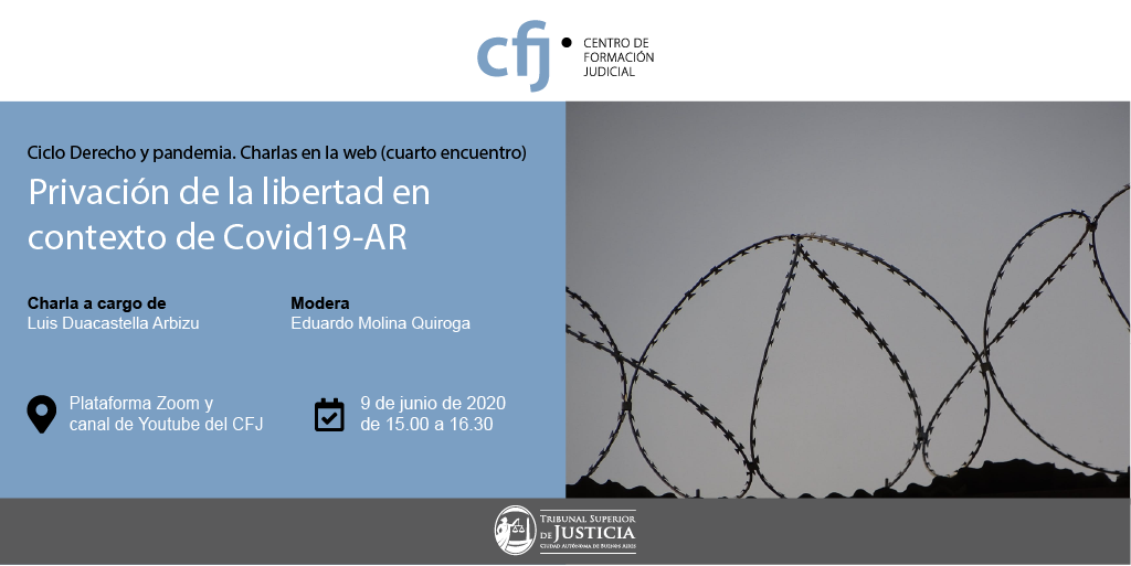 El Centro de Formación Judicial llevó a cabo el martes 9 de junio un nuevo conversatorio del “Ciclo Derecho y pandemia. Charlas en la web” bajo la consigna “Privación de la libertad en contexto de Covid19-AR”. La exposición en esta oportunidad estuvo a cargo del Dr. Luis Duacastella Arbizu y el moderador fue el Dr. Eduardo Molina Quiroga, Secretario Ejecutivo del Centro.